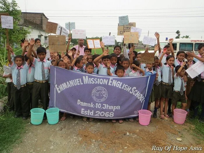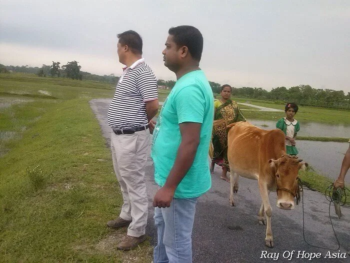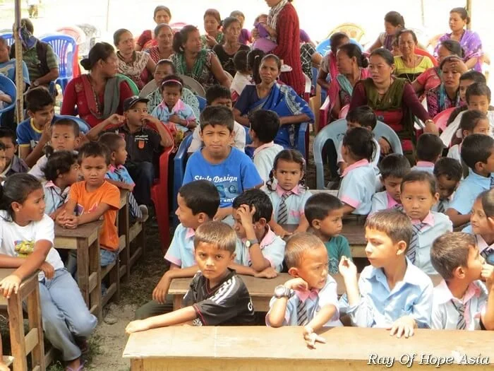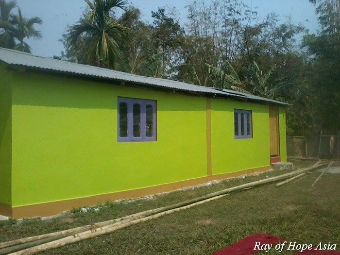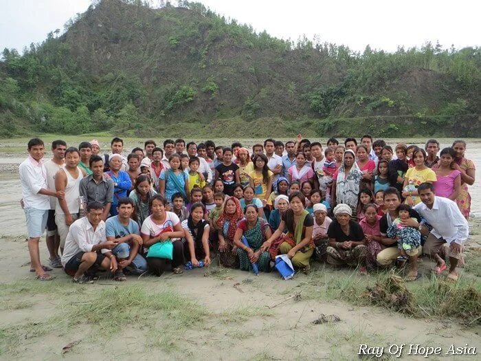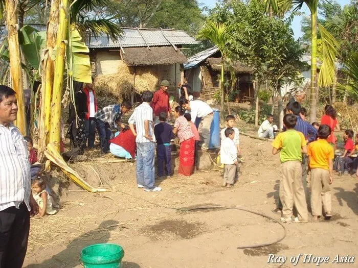 The bamboo building is Shreejana Busty Ray of Hope Church. Before we had established our church there, the village had two names: one was Kami Gau, and the another was Devi Basti. Later, when people started receiving Christ, we changed the village's name to Shreejana Basti, which means Creation Village.